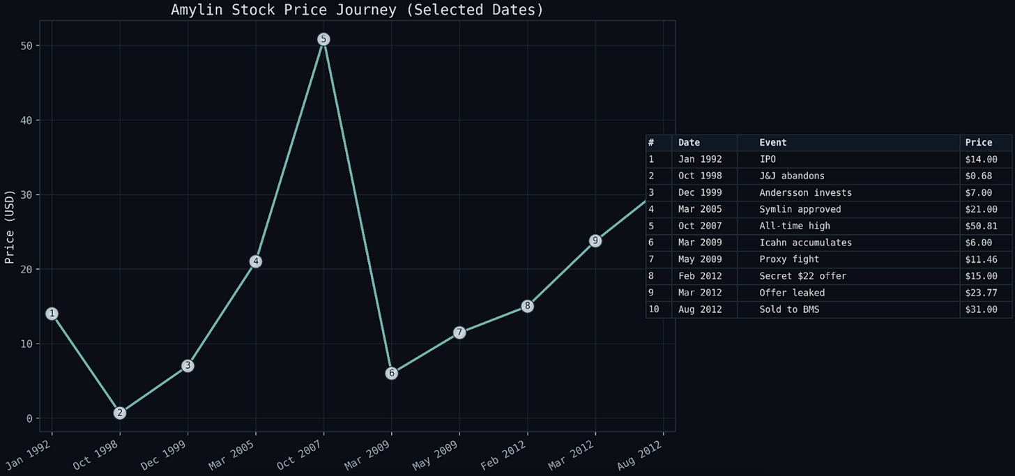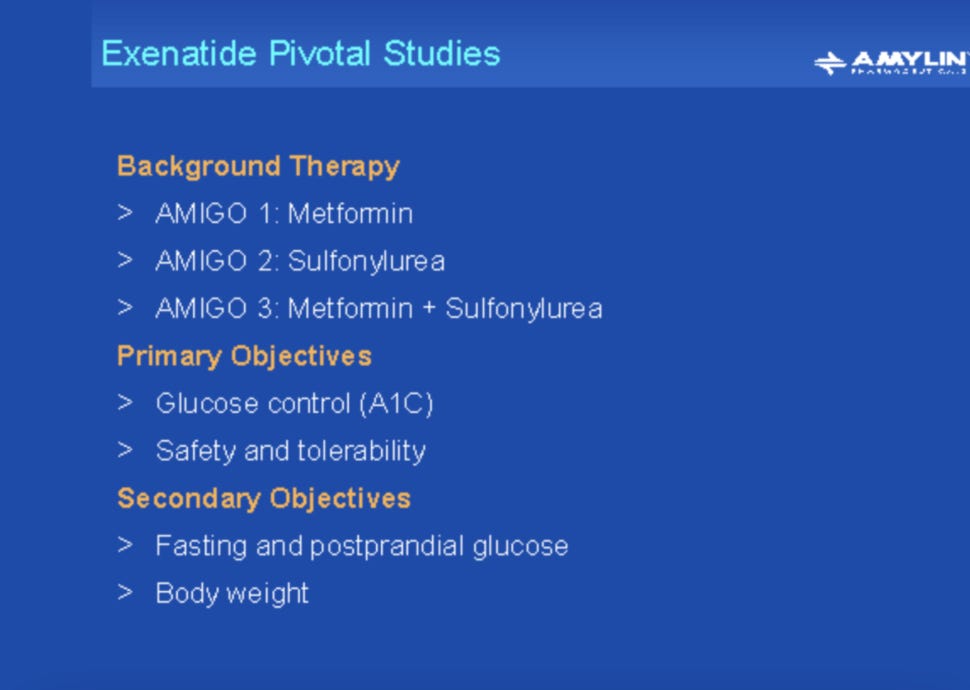 Amylin investor presentations from corporate IR archives. Specific slides referenced in the script are noted below.